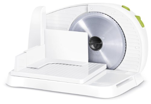 Quest’affettatrice presenta un design curato e pratico. Si tratta di una macchina adatta ad un uso prettamente domestico. Le dimensioni ridotte e la possibilità di essere richiudibile consentono a questa macchina di essere utile in una cucina piccola. E’ facilmente smontabile per essere pulita. La manopola di regolazione di spessore è accessibile e intuitiva. La lama di discreta qualità affetta con regolarità diversi tipi di cibo. Ovviamente non è adatta a cibi troppo voluminosi o pesanti date le sue dimensioni. Il rapporto qualità prezzo è decisamente buono considerando che si tratta di una macchina da casa che può essere un valido aiutante in cucina molto pratico e veloce da usare. Il motore non va incontro a surriscaldamento in fase di uso. Il pressa-alimenti in plastica consente di stabilire gli alimenti in fase di taglio e preservare le dita. E’ ideale per tagliare pane, salumi, carne ma anche frutta e verdura. La sua struttura in plastica agevola una maggiore pulizia. Il vassoio porta-alimenti è smontabile e può essere portato a tavola. La slitta del carrello è di piccole dimensioni ma piuttosto comoda da usare. L’intero corpo macchina risulta abbastanza stabile in fase di taglio. Non è indicata per un uso semi-professionale a causa delle sue dimensioni molto ridotte.