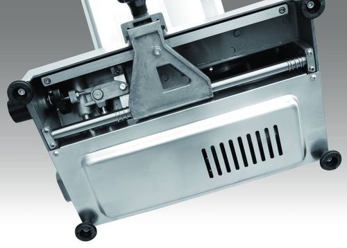 Si tratta di una macchina semplice da usare, semi-automatica, con un carrello che scivola facilmente e dotata del pressa-alimenti che consente l’utilizzo in totale sicurezza. Adatta a qualsiasi cibo sia di piccole che grandi dimensioni, garantisce sempre un taglio regolare e preciso. Grazie ai piedini antiscivolo e al peso della struttura, e alla stabilità della base, la macchina resta fissa durante l’uso. Senza nessuno sforzo si può affettare il cibo molto velocemente. La manopola di regolazione dello spessore è intuitiva ed ergonomica, il pulsante di accensione presenta una guaina protettiva nel caso lo premessimo con le dita sporche o bagnate. Il pressa alimenti ha un’impugnatura solida e mantiene le mani ben distanziate dalla lama garantendo però la precisione del taglio.