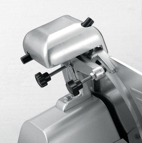 La lama in acciaio inossidabile inox di 25 cm di diametro, molto più grande delle affettatrici medie domestiche. Queste dimensioni unite alla qualità dell’acciaio e del filo permettono un taglio di tipo professionale su qualsiasi genere di alimento. Sicura e duratura, la lama può tagliare con una regolazione che va da 0 a 10 mm. Inoltre il  gruppo di affilatura automatico presente al di sopra della lama e integrato col corpo macchina, garantisce l’affilatura costante.