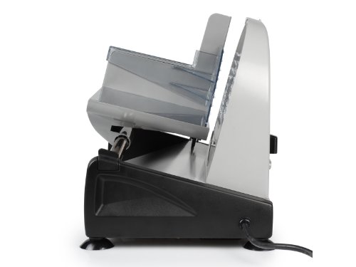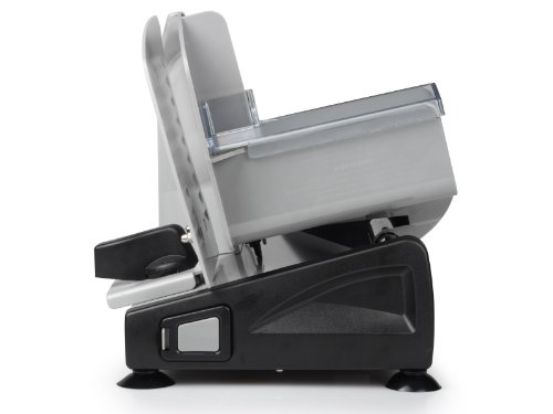 Complessivamente si tratta di un’affettatrice discreta per il rapporto qualità prezzo che è molto buono. Il design è piuttosto nella media ma curato per farne un elettrodomestico intuitivo e pratico da usare. La struttura è stabile data la base in acciaio con piedini antiscivolo, ma non adatta a tagliare cibi pesanti. Il carrello scorrevole è piuttosto scorrevole,il pressa-alimenti in plastica consente di tagliare con precisione e cura ma soprattutto di preservare le mani dalla lama. La lama è discreta su diversi tipi di cibi di piccole dimensioni. La manopola di regolazione dello spessore posteriore alla lama è ergonomica e facile da usare. Il motore è abbastanza potente e consente di tagliare agevolmente sia alimenti freschi sia stagionati senza andare incontro a problemi di surriscaldamento. E’ adatta anche a carne cruda, frutta, verdura e pane. Si tratta di una macchina indicata solo ed esclusivamente per un uso domestico, grazie alle sue dimensioni ridotte può tranquillamente essere riposta in cucina ed essere smontata e pulita molto facilmente. Decisamente economica presenta alcuni difetti nella struttura ma è in grado di affettare diversi tipi di cibi in maniera veloce e intuitiva. Il motore e i piccoli difetti della struttura ne fanno un’affettatrice non adatta ad usi continuativi o semi-professionali.